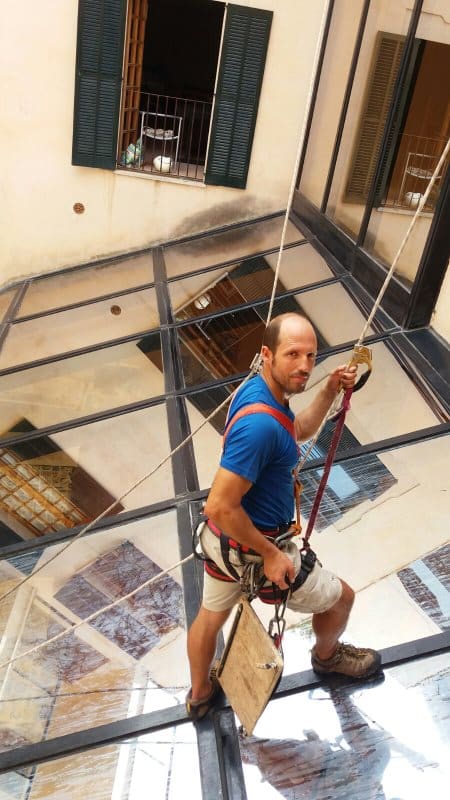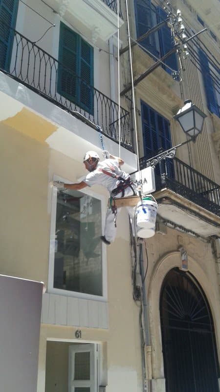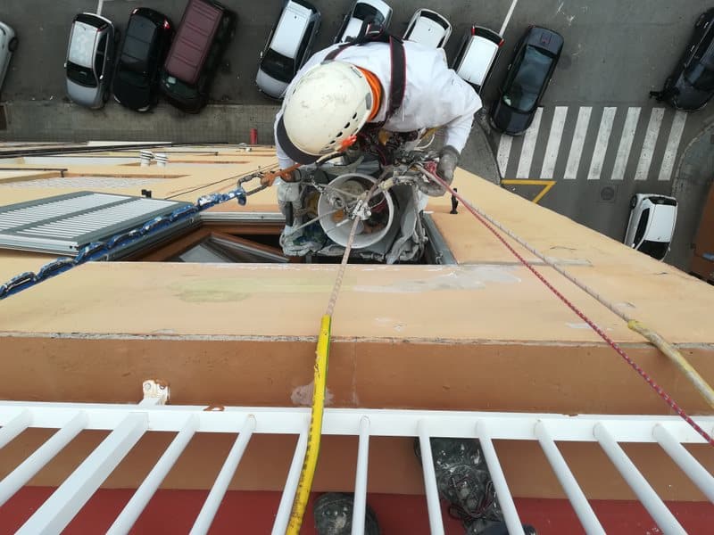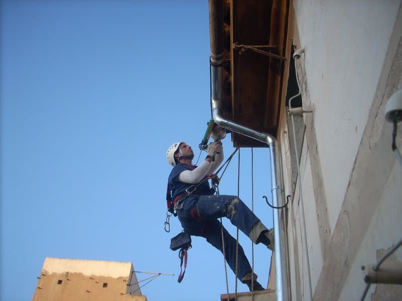 Realizamos todo tipo de trabajos en lugares de difícil acceso. Fachadas, medianeras, patios interiores, tejados, antenas y aljibes.
